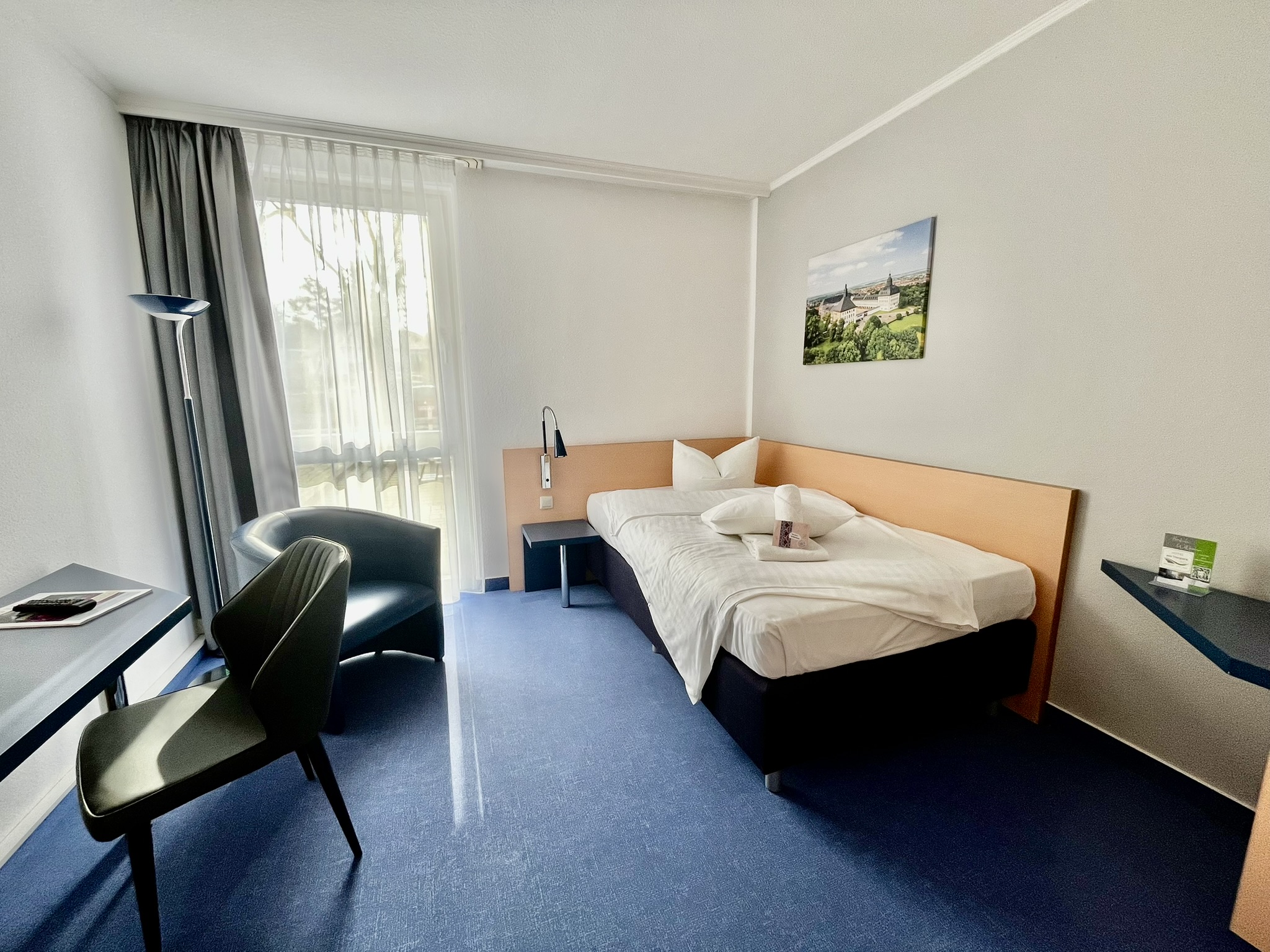 Alle Einzelzimmer verfügen über ein großes französisches Bett mit den Maßen 140 x 200 cm.