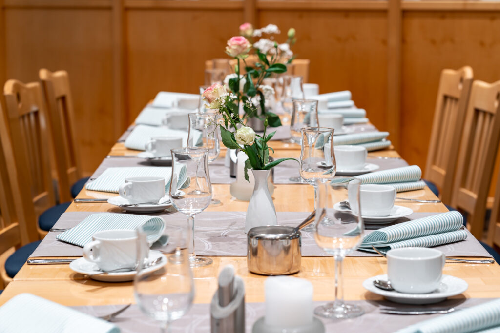 Unsere modernen Veranstaltungsräume bieten Raum für kleine Meetings, Workshops oder große Firmenveranstaltungen. Mit flexibler Bestuhlung, moderner Technik und persönlicher Betreuung schaffen wir den perfekten Rahmen für Ihre geschäftlichen Events.